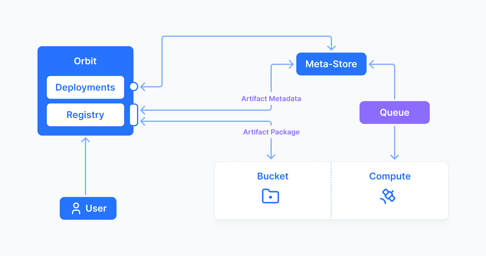 An Orbit is a project space within an Organization that brings work together without owning the heavy resources itself. The name comes from the way it operates: the Orbit is the center of a project, while the data storage (Buckets) and compute resources (Satellites) stay outside and are linked in as needed, similar to objects moving around a central body.